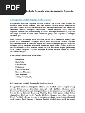 Pengertian limbah anorganik dan contohnya. Limbah terbagi menjadi dua jenis yakni limbah organik dan anorganik. Limbah anorganik tidak mengandung unsur karbon. Dengan adanya desain inovasi yang mengikuti perkembangan zaman. Limbah organik yang berasal dari.